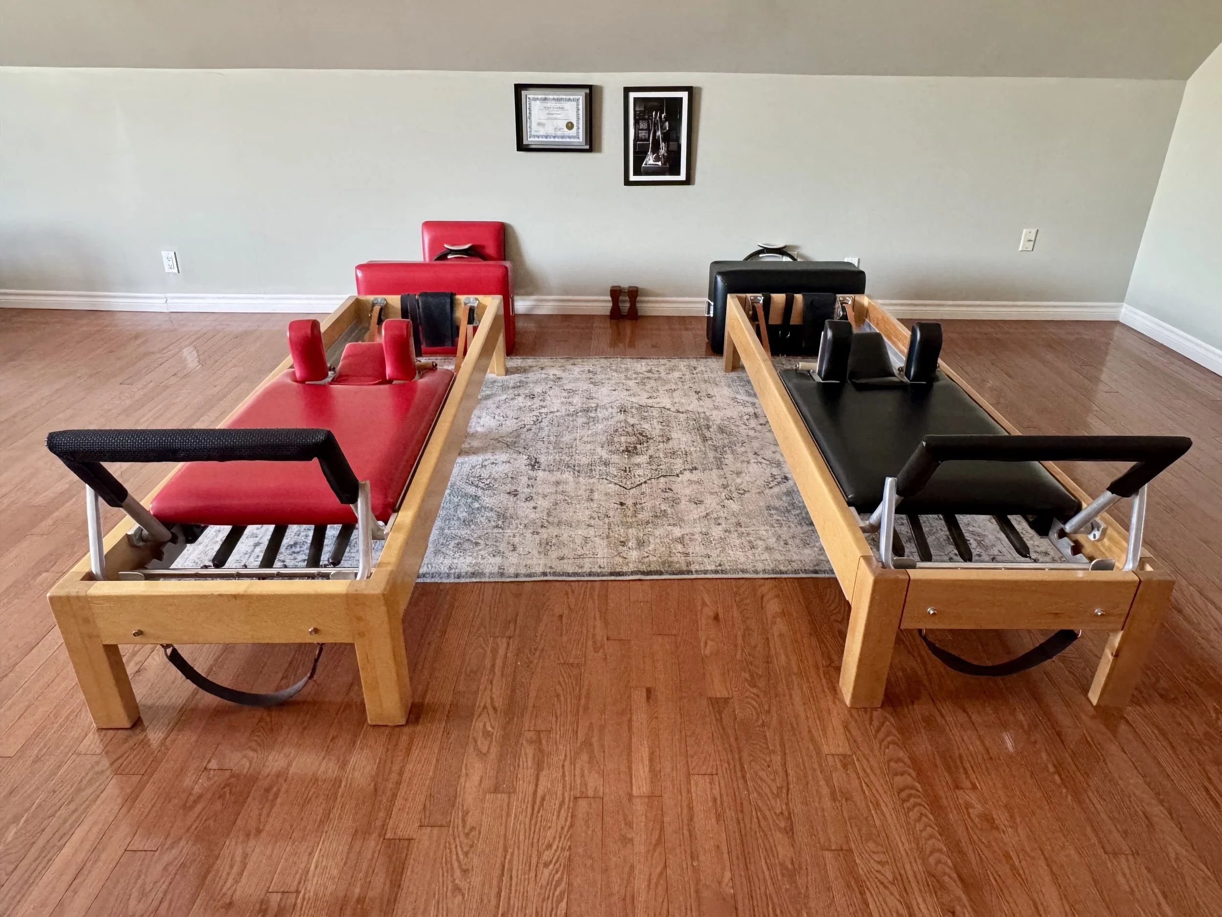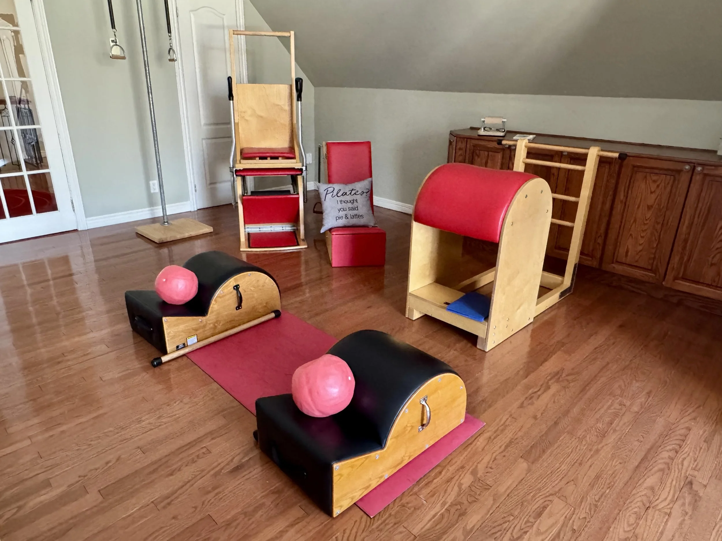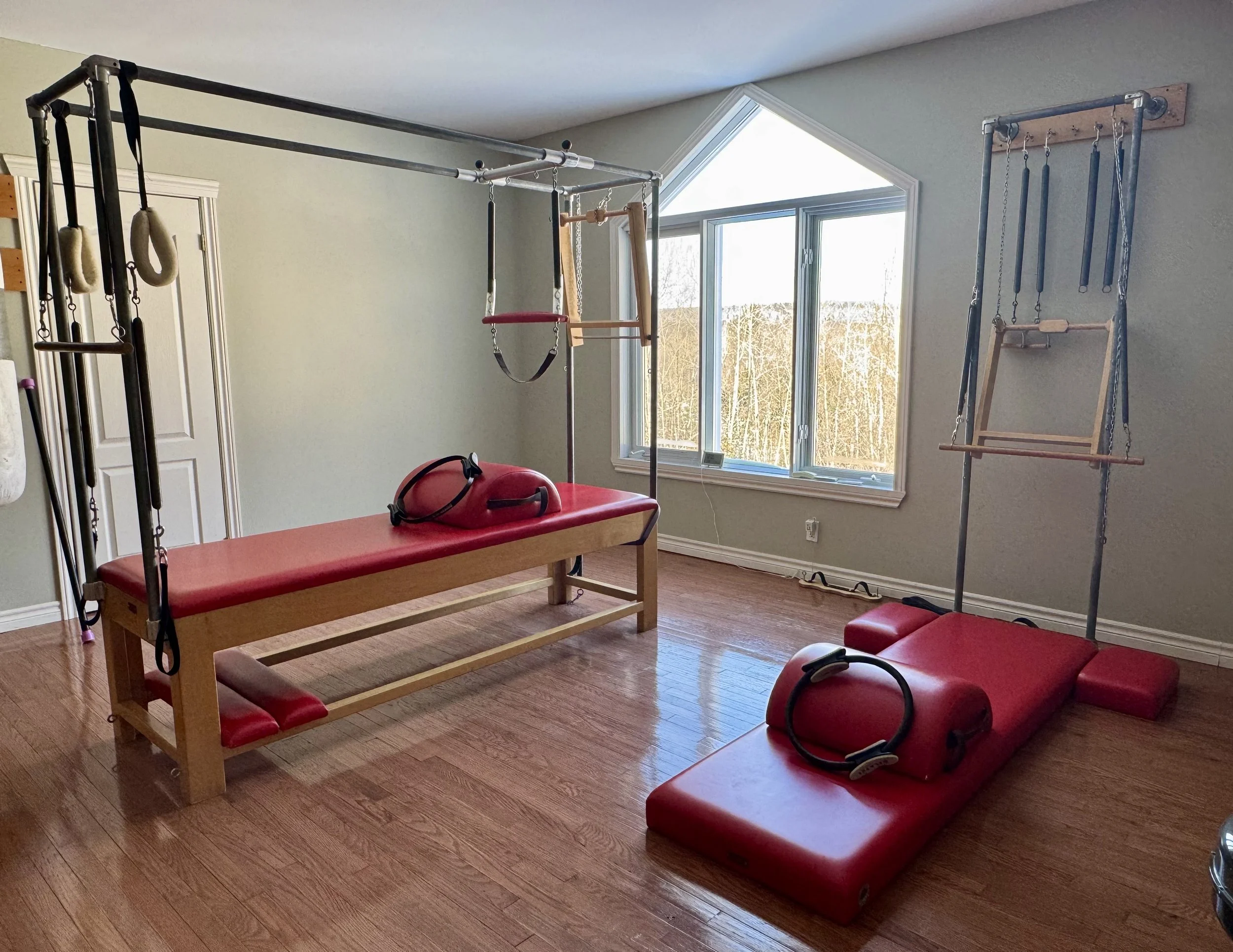Reformer; Cadillac; Combo Electric/Wunda Chair; Baby Arm Chair; Ladder Barrel, Spine Corrector; Small Barrels, Pedi-Pull, Foot Corrector et une panoplie d’accessoires.